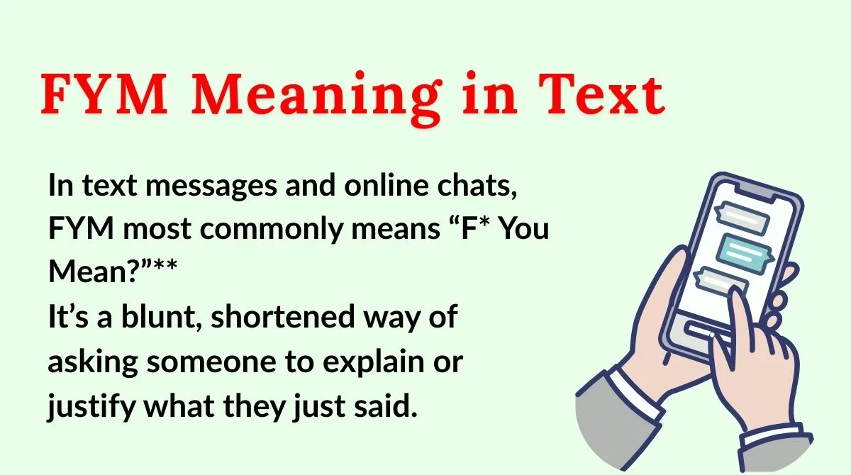 ⚠️ Context matters. In casual chat, FYM almost always means “F** You Mean?”*
