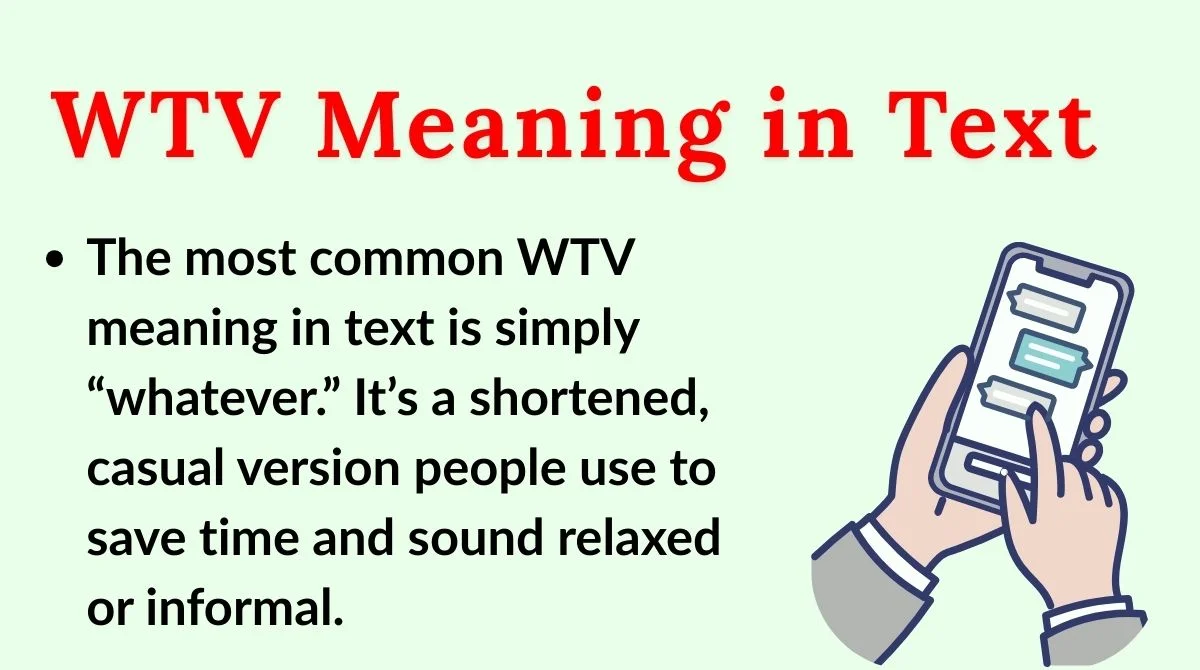 The most common WTV meaning in text is simply “whatever.” It’s a shortened, casual version people use to save time and sound relaxed or informal.